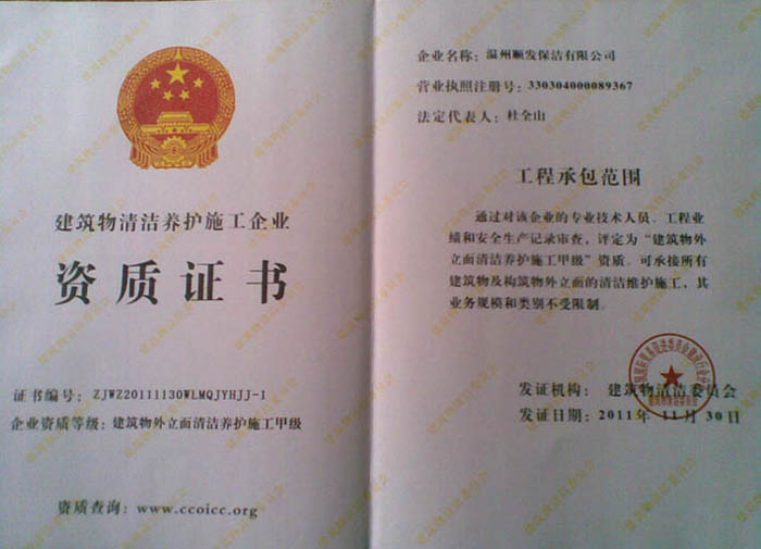 上一證書:會員證書   下一證書:石材養(yǎng)護(hù)施工資質(zhì)證書 >>返回